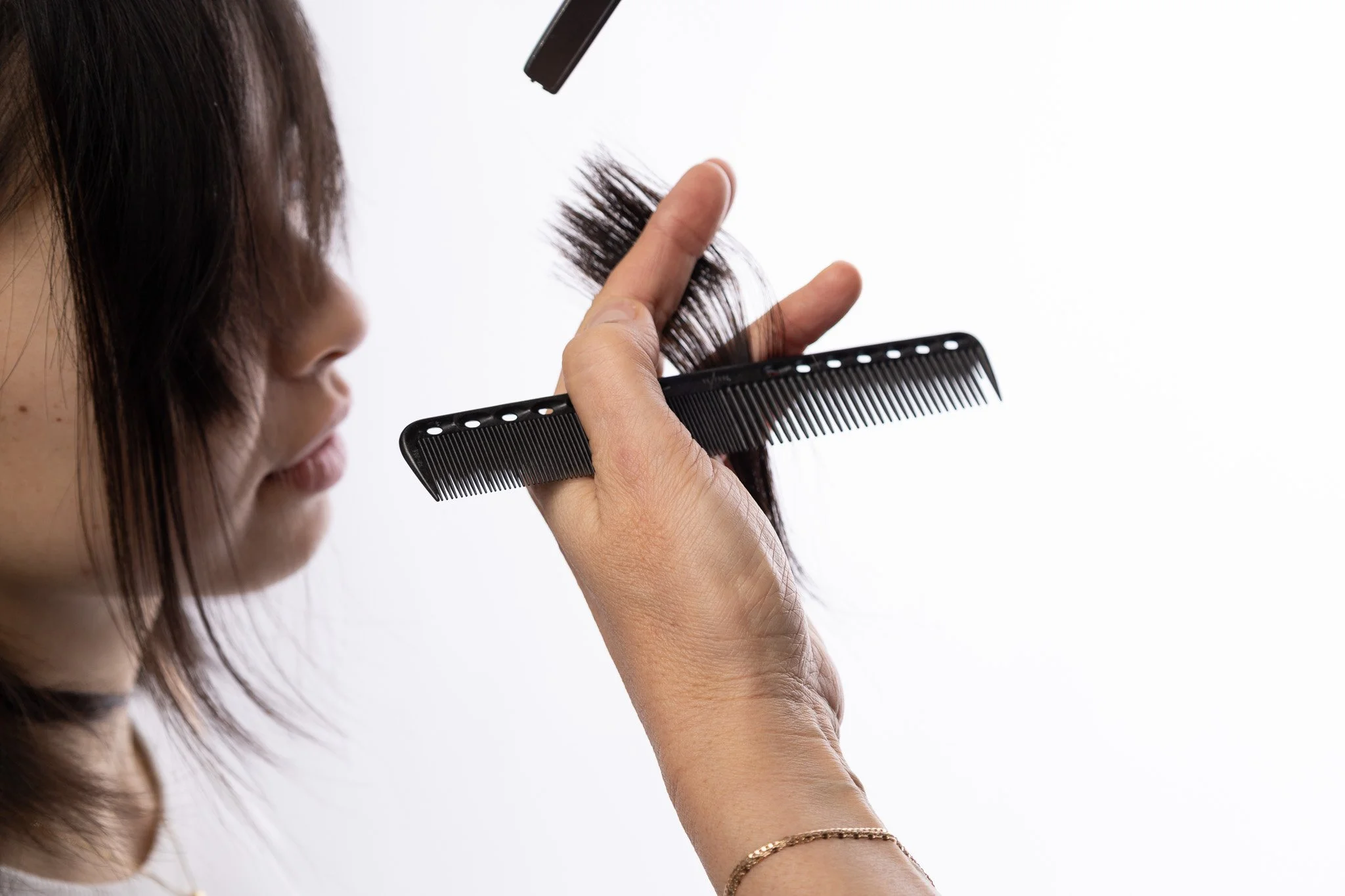 Using the tips of the scissors to soften or refine a line. Point cutting should enhance structure — not replace it.